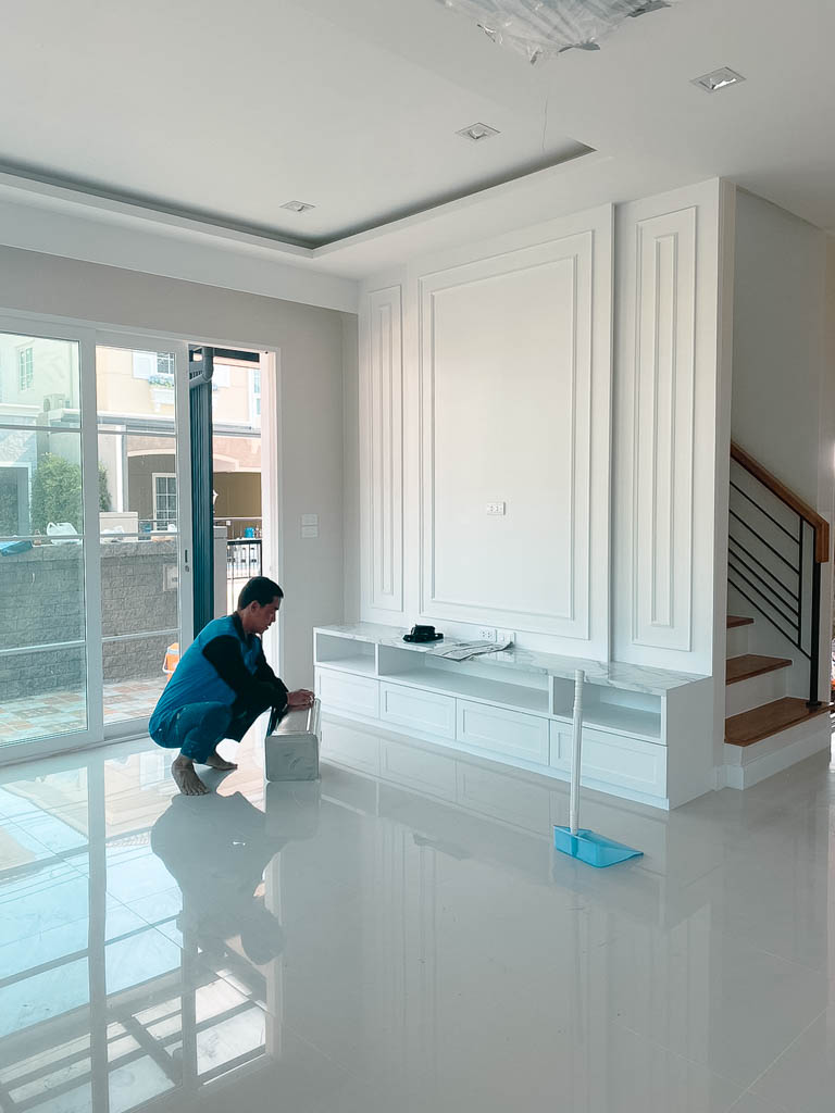 ระบบไฟฟ้า: ติดตั้งระบบไฟ LED แบบซ่อนในเฟอร์นิเจอร์บิ้วท์อินเพื่อเพิ่มมิติให้กับห้อง และการวางระบบไฟหลักในบ้านเน้นการกระจายแสงที่สม่ำเสมอ พร้อมโคมไฟที่ช่วยสร้างบรรยากาศอบอุ่นในยามค่ำคืน