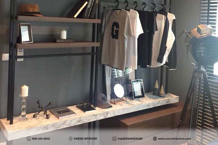 - ชั้นวางบิ้วท์อิน: ออกแบบชั้นวางทีวีพร้อมพื้นที่จัดเก็บแบบซ่อน เพิ่มความเรียบร้อยและใช้งานสะดวก